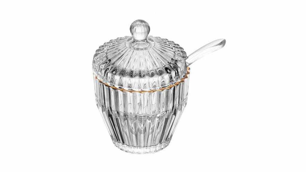 Açucareiro de Cristal com Fio de Ouro Imperatriz 8cm x 8cm x 11cm - Wolff